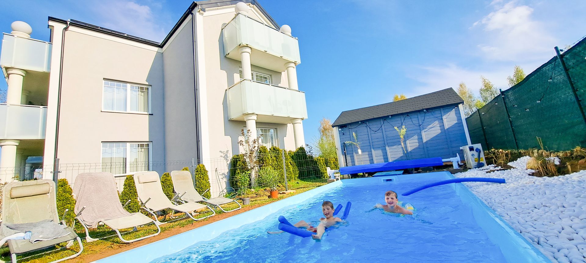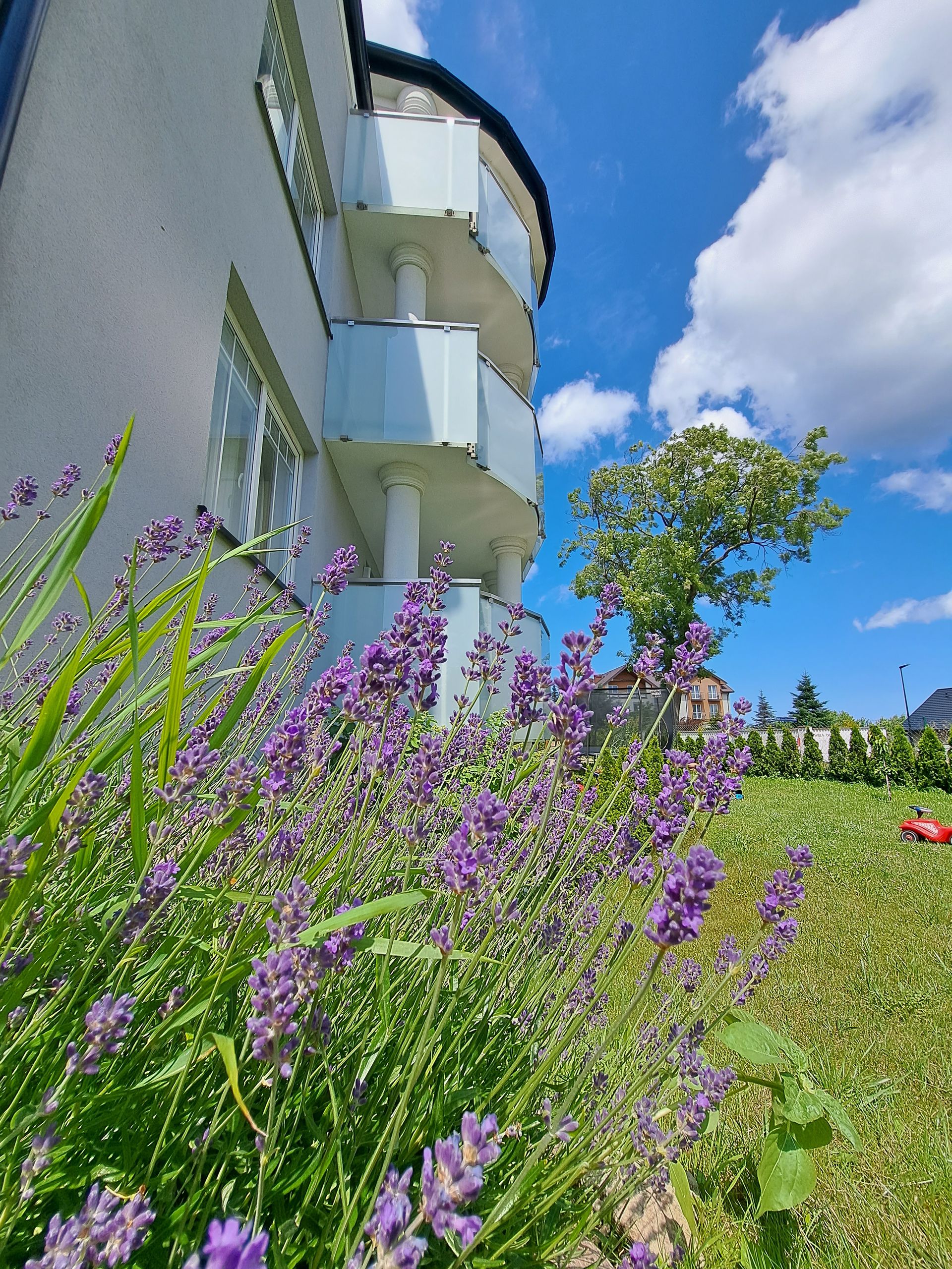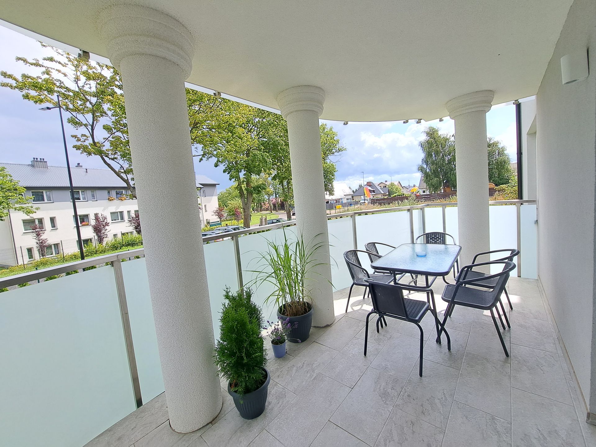 - 2 duże zadaszone wspólne balkony z dużym stołem i 6 krzesłami