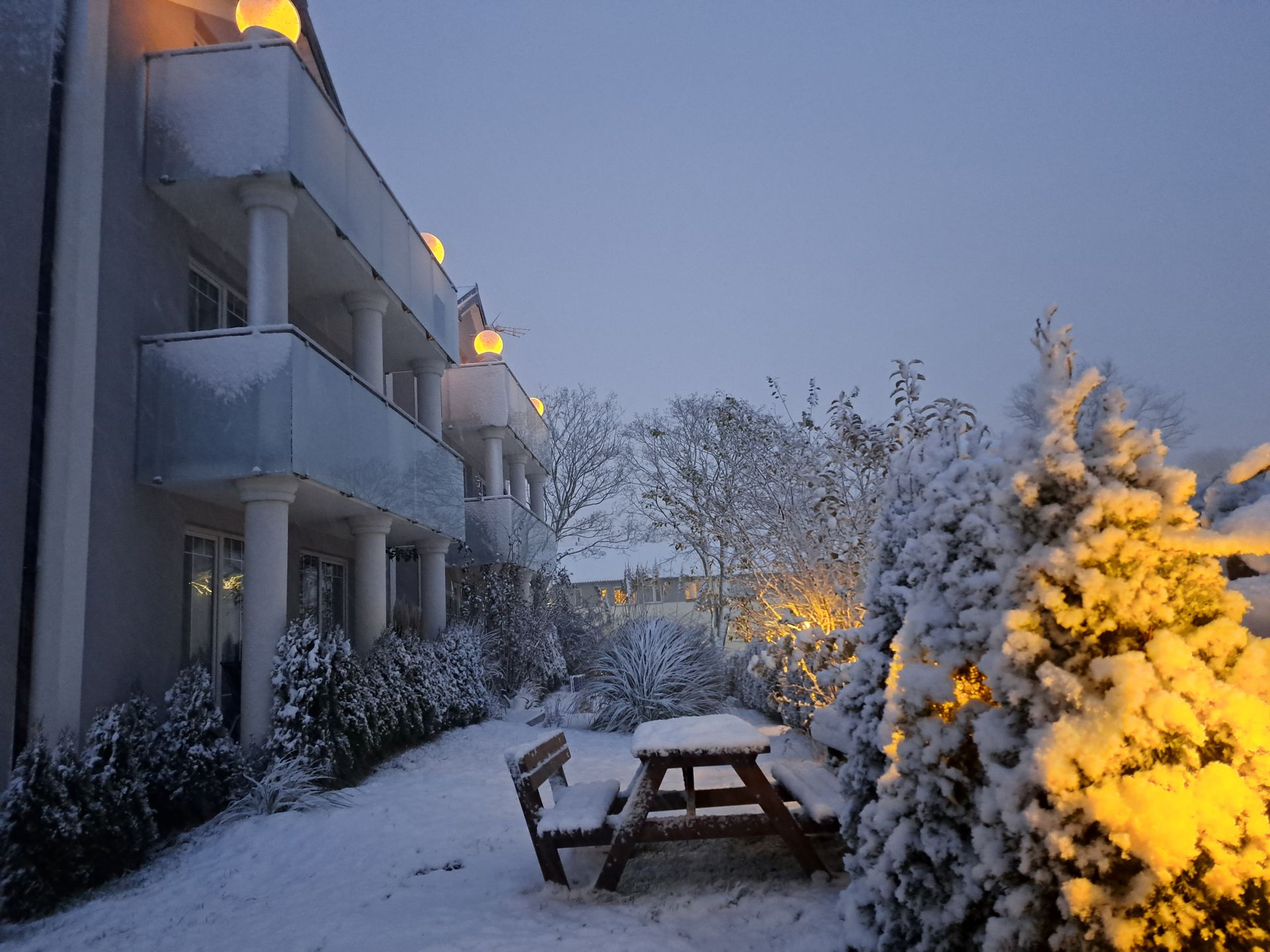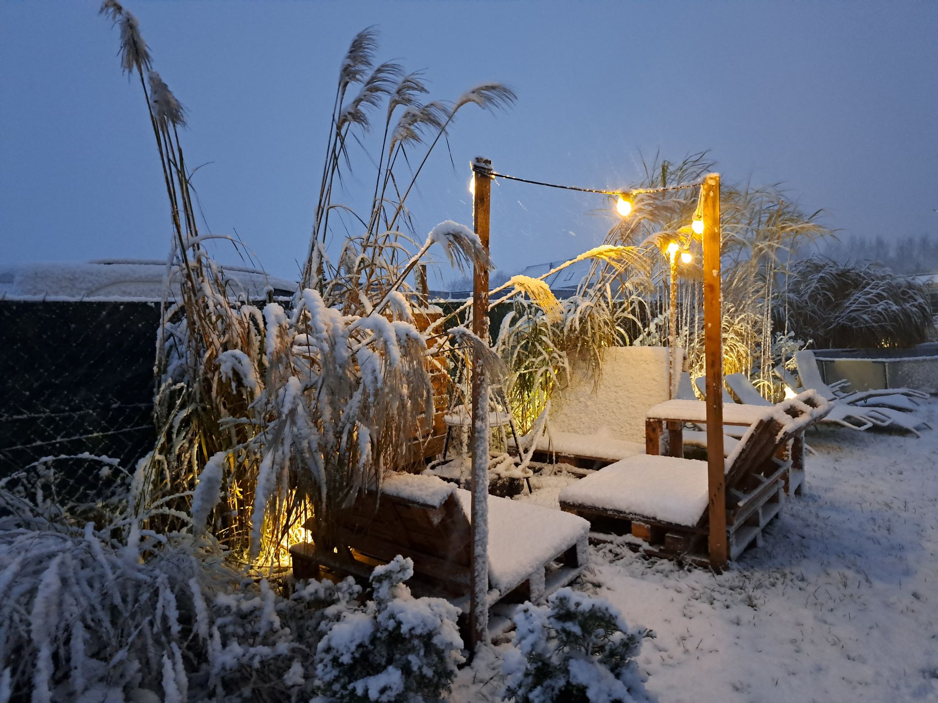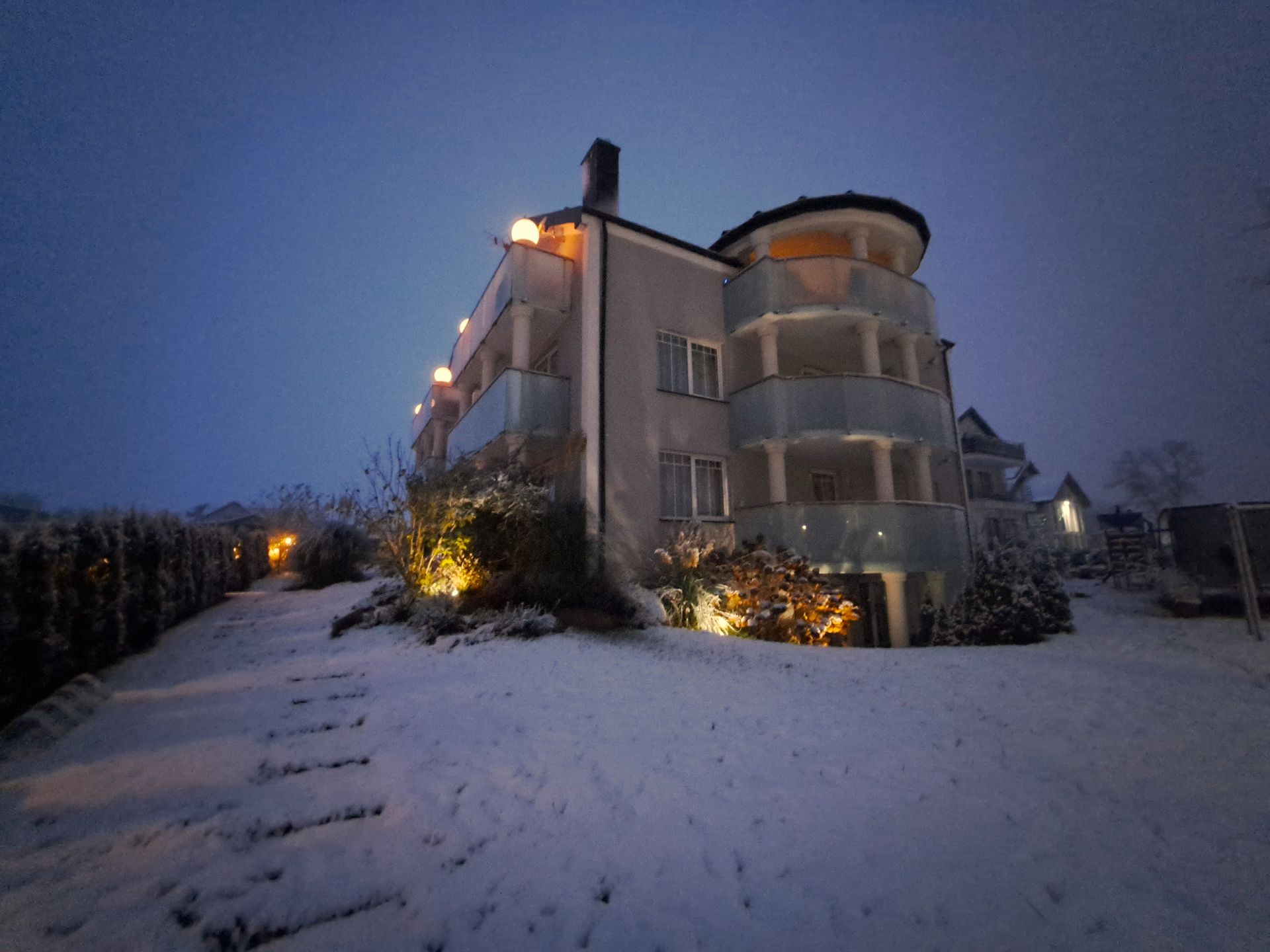 - 2 duże zadaszone wspólne balkony z dużym stołem i 6 krzesłami
