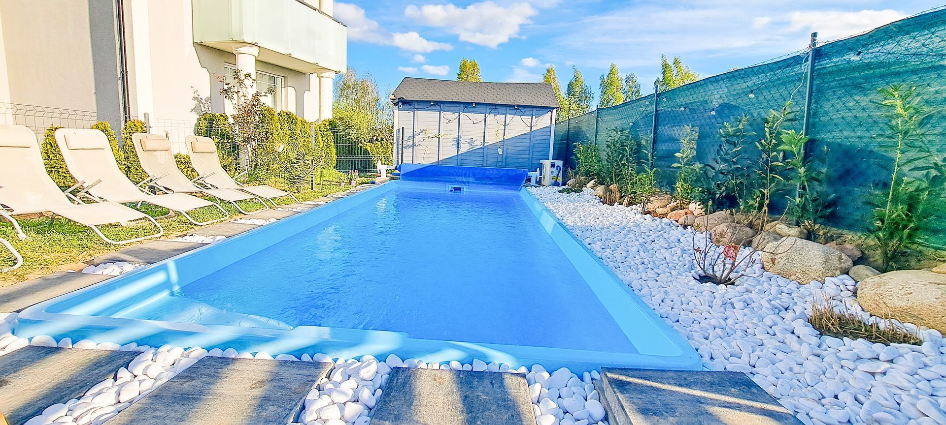 Nasz nowy podgrzewany basen ma wymiary 7m x 3m i głębokość 1,2m.