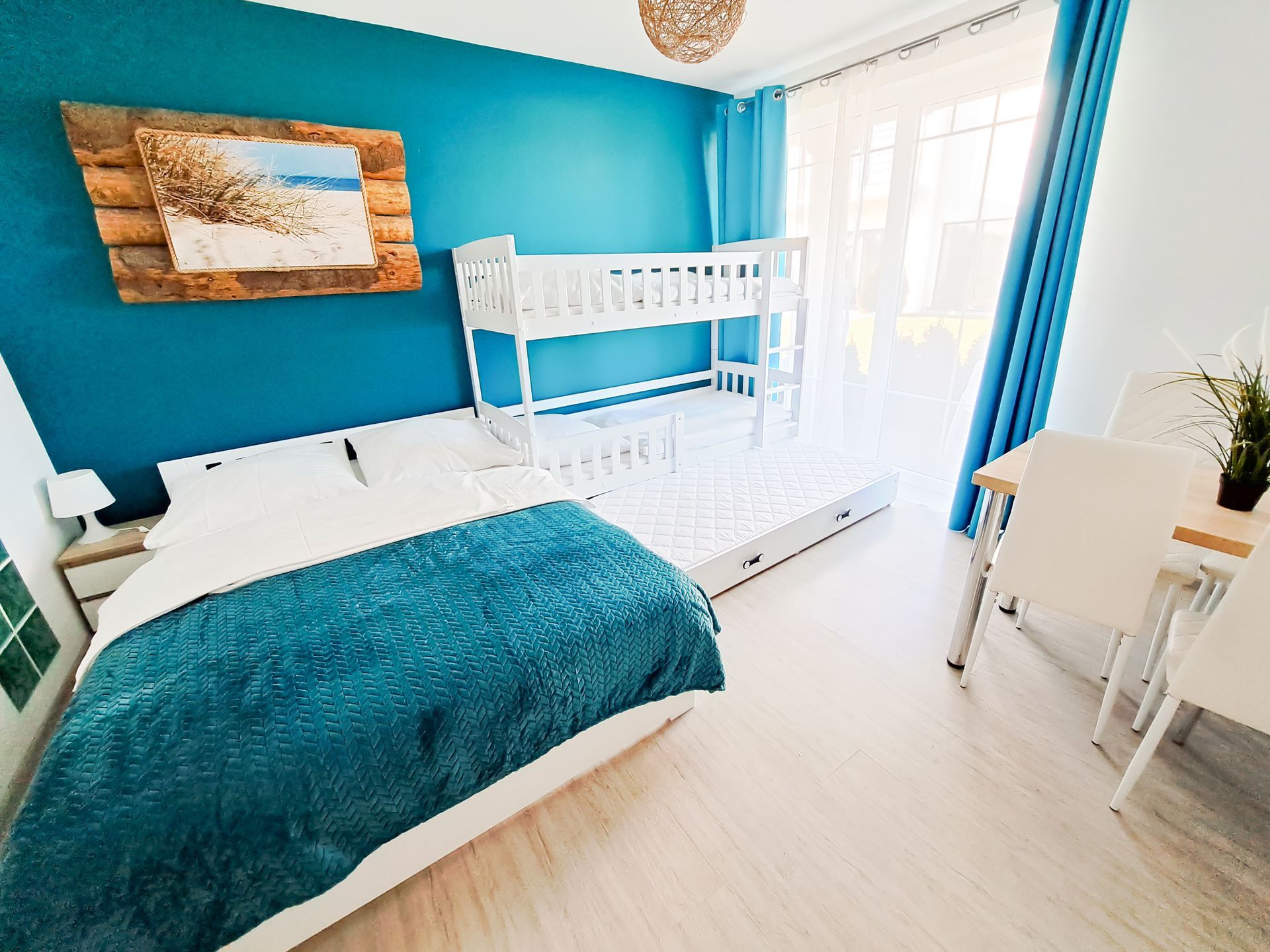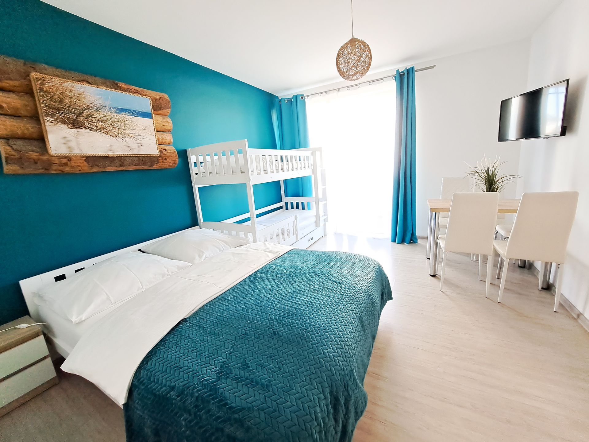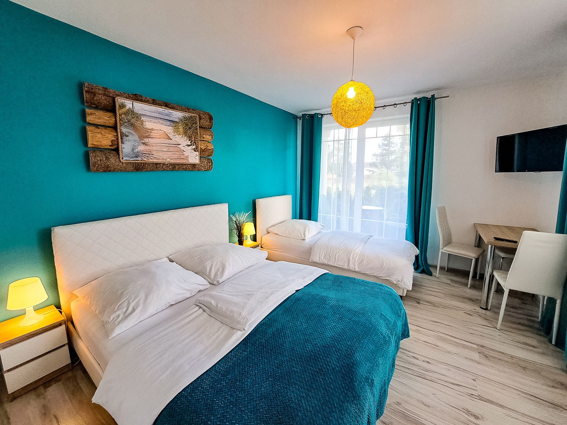Oferujemy pokoje dwuosobowe, trzyosobowe oraz pokoje rodzinne dla 4 lub 5 osób. Wszystkie nasze pokoje są nowocześnie i pięknie urządzone w stylu bałtyckim i mają około 20 m2 powierzchni.